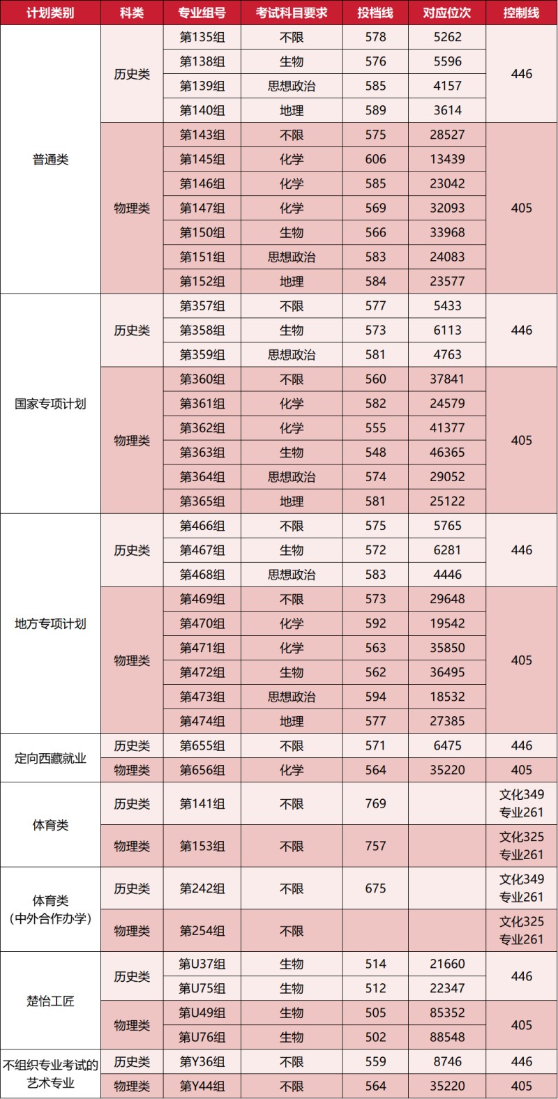 物理类地方专项最低分562。楚怡工匠历史类最低512分。