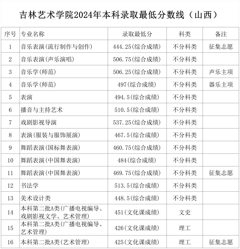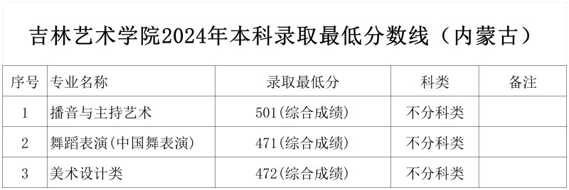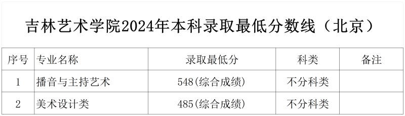 吉林艺术学院2024在河南播音与主持艺术最低分508,表演最低分520,戏剧影视导演最低分540,表演服装与服饰展演最低分486。