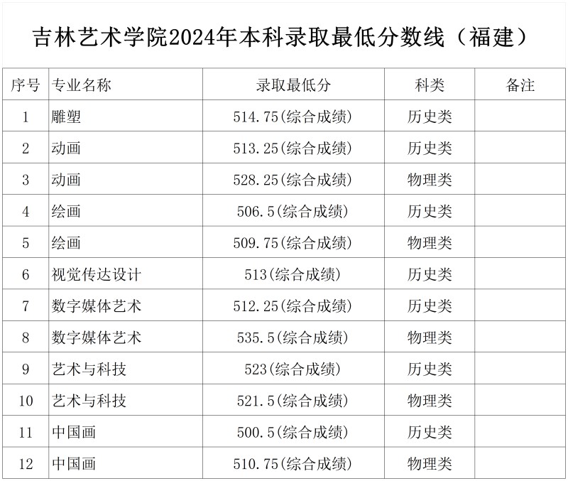 吉林艺术学院2024附件动画专业最低分513,雕塑历史类最低分514.75,动画物理类最低分528.25。视觉传达设计历史类最低分513。