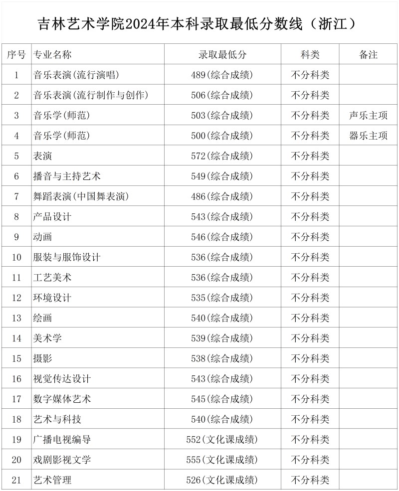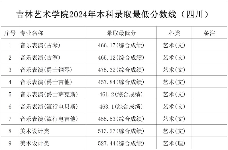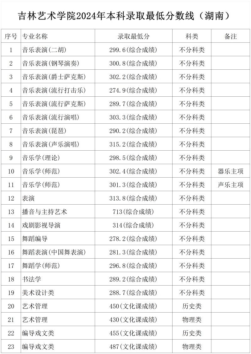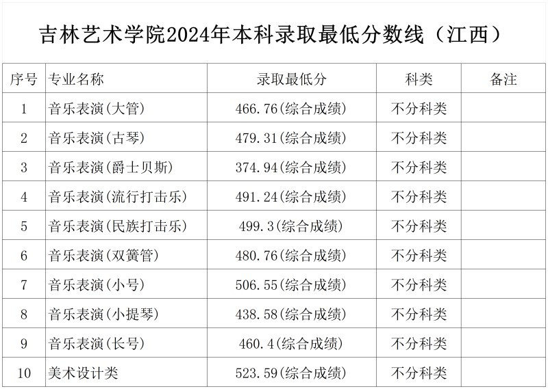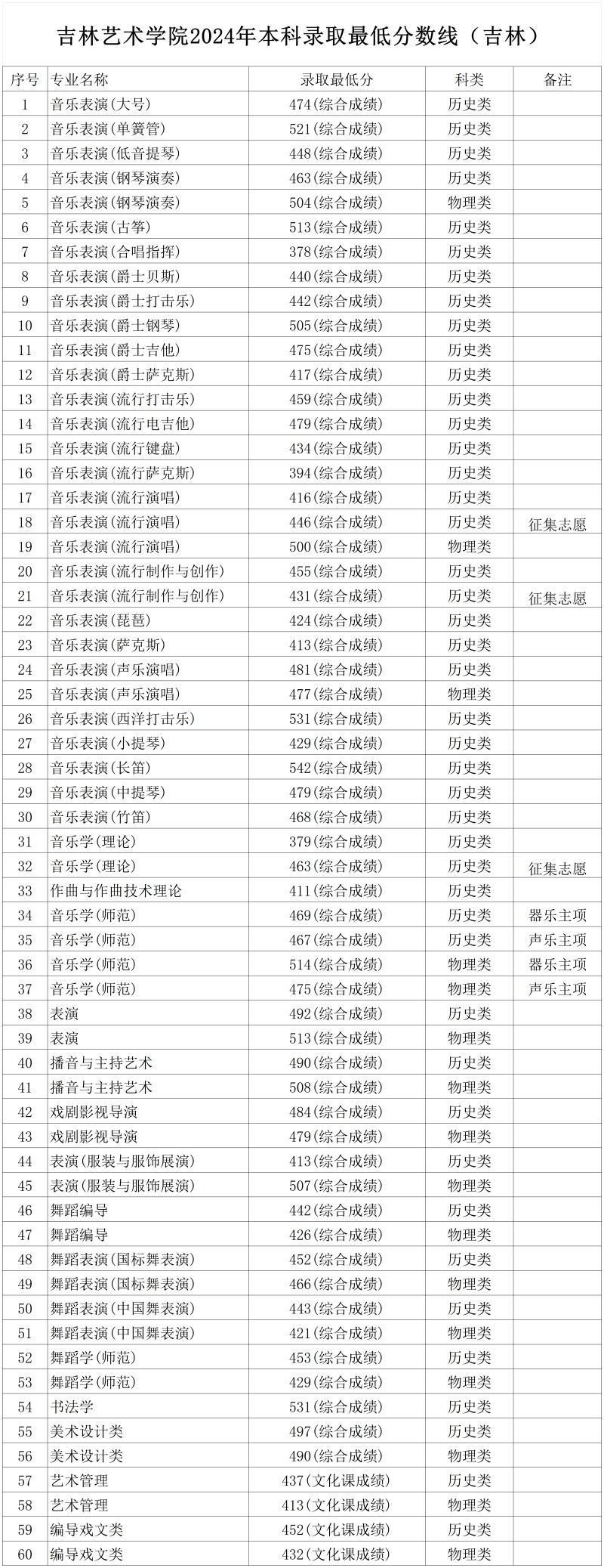 吉林艺术学院2024吉林省内音乐表演大号历史类最低分474,音乐表演单簧管历史类最低分521,音乐表演古筝历史类最低分513。