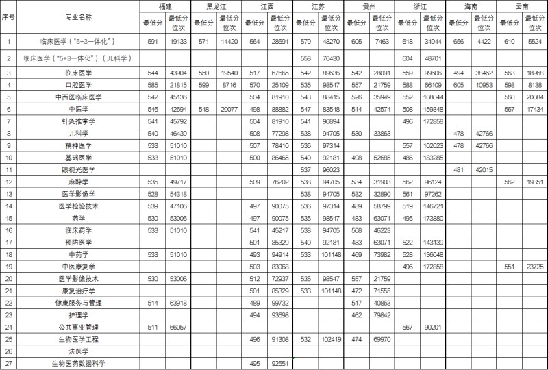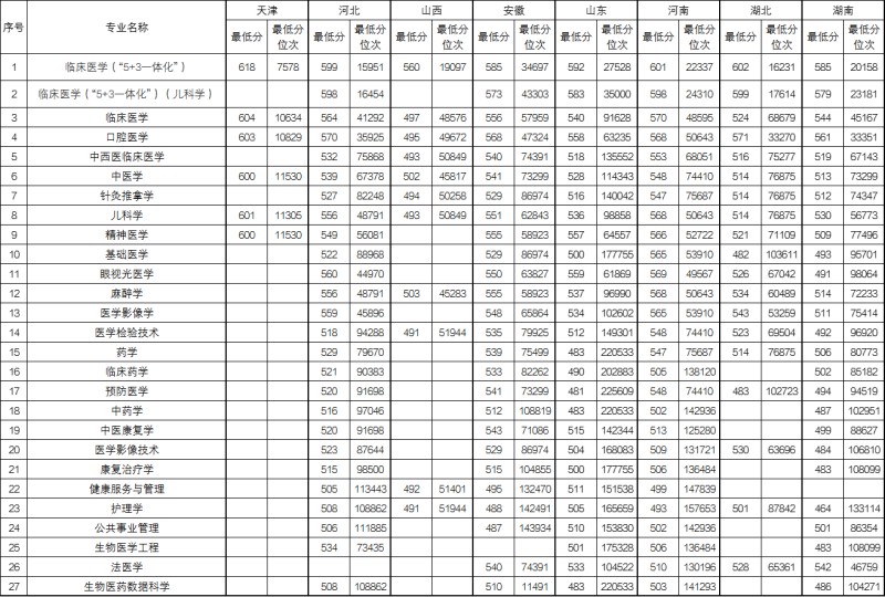 临床医学专业2024最低分467,单列类临床医学最低分405。
