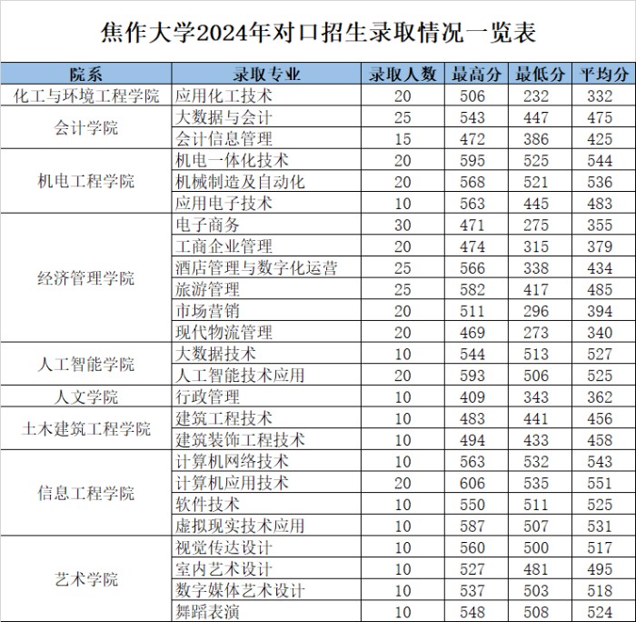 理科最低分379。1、焦作大学2024高考河南专业录取分数线