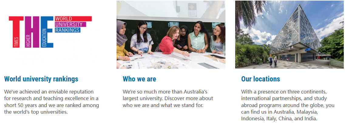 莫纳什大学成立于1958年,是澳洲八大名校联盟成员,也是澳大利亚规模最大的大学。学校在墨尔本有多个校区,并在马来西亚、南非、意大利和印度设有分校。